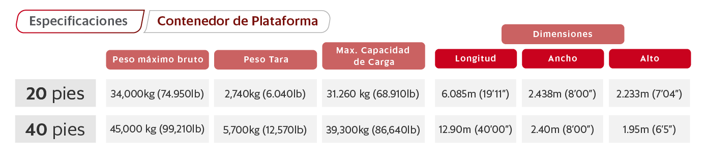 Se emplean para cargas atípicas, pesadas o sobredimensionadas, aplicando suplementos según el exceso (similar a Open Top cuando la carga rebasa).